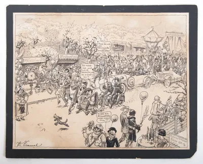 Caricature drawing in Indian ink, probably made for the magazine 'Lustige Blätter', ca. 1925. Sign. lower left corner, 32 x 41,5 cm.