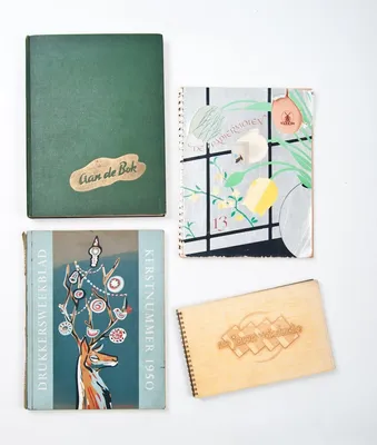 Projects designed and created by members of the "Katholieke Grafische Studiekring Tilburg", 1938. Oblong ring bound with 30 appendices such as blotting paper, advertising...