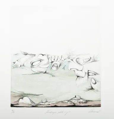Edition Handpresse Gutsch. 1985. Nr. 12/100, signed by the artist. Folio in clothbacked cassette.