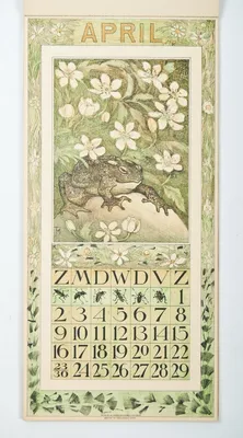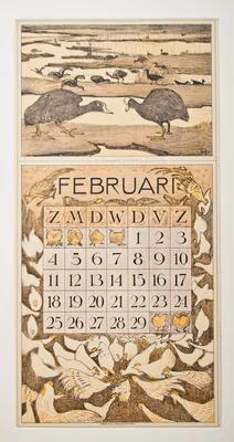 Calendar of the year 1911 with pictures by Theo van Hoytema printed on stone. Printed at Tresling & Co. Amsterdam. Size 47,5 x 21.2 cm. First two leaves are loose, first leaf...