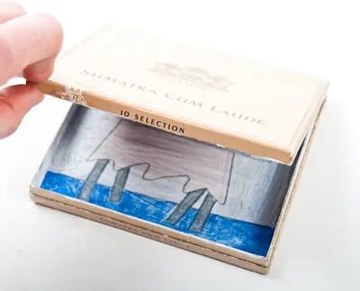 Cardboard cigar box (11x13 cm) with a still life painted by Klaas Gubbels on the inside. Signed, 1994, in good condition.