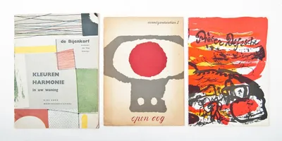 1946, red. Wim Brusse, Jaffee, Kloos, Rieveld, Sandberg, Mat Stam + Pieter Defesche, cat. 336, stedelijk museum Amsterdam, 1963. Cover litho Defesche + De Bijenkorf, Kleuren Harmonie...