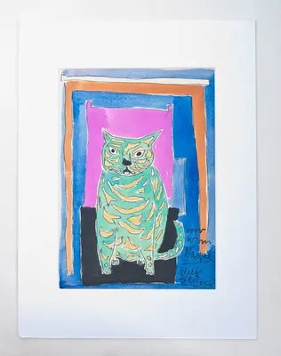 "Poes". Watercolour with dedication to Wim Nagel (pseudonym J.B. Charles). 27,5 x 19,5 cm. Under passe-partout.