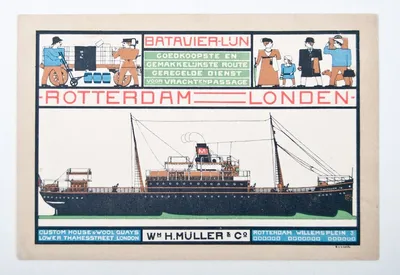 Batavier-lijn Rotterdam-Londen. Wm H. Müller & Co. Postcard 1916. Small fold upper right corner. Otherwise good copy.