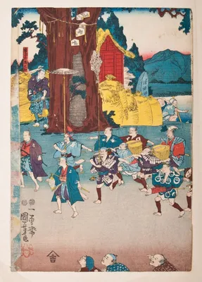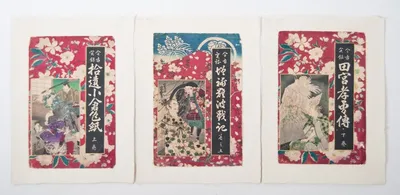 Triptych. Japanese woodcut. Ca. 1875. 37 x 25 cm.