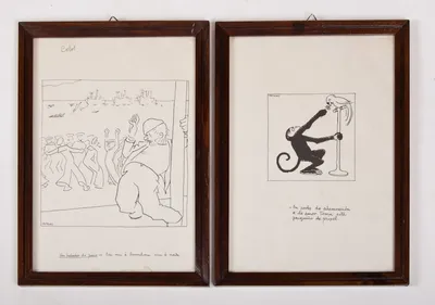 2 drawings in caricature: Un bebedor de pais and: En proba de ademiracion... Spanish (Gallic) poet and artist, 1886-1950.