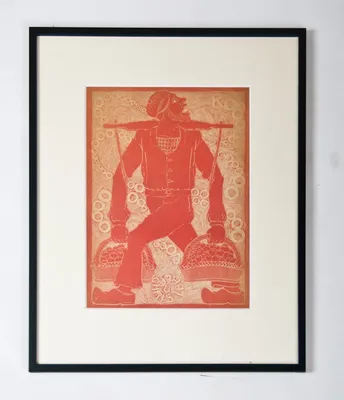 Boer met Zijs. Litho, ca. 1948. Numbered and signed. 39 x 34 cm. on Old Dutch.