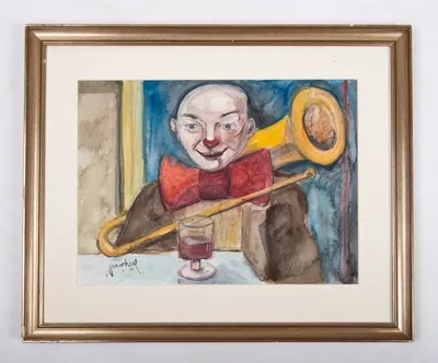 Schruiftrompetter met glas wijn. 1948. Watercolour. 36,5 x 48,5 in passe-partout in frame.
