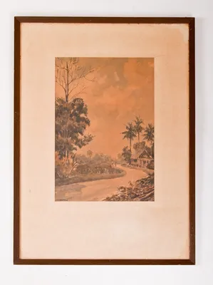 Malaysia, ca. 1930. Watercolour 30 x 21 cm. In frame behind glass.