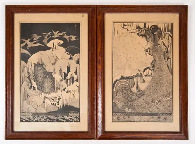 Nine calendar leaves from the period 1904 - 1913 with pictures by Theo van Hoytema (1863 - 1917), printed on stone. Printed at Tresums en Co Amsterdam. Size 47.5 x 21.2 cm. In...