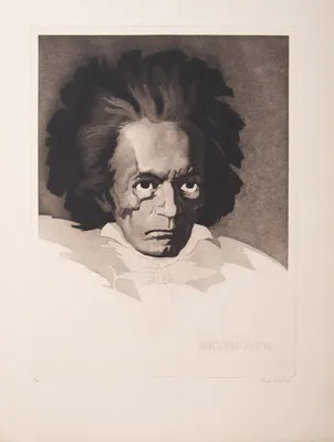 Beethoven. Litho, black-and-white. Numbered 8/125 and signed 50 x 38 cm.