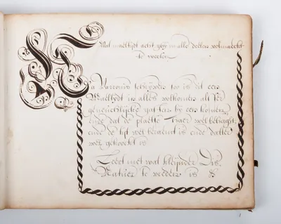 titel: Hier zijn in gheschreven vele Schriftuerlijcke en Philosophische Tijt-kortinghe meest genomen uijt Spinx. Wilt mijn schrift niet laken, maar wilt het eerst beter maken....