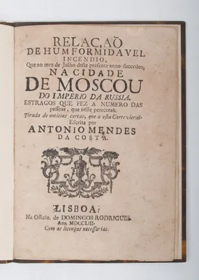Do Imperio da Russia. Antonio Mendes da Costa, Lisboa, Domingos Rodrigues, 1753