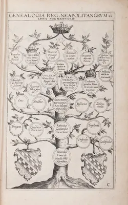 6 genealogical tables and 26 portraits in copperengraving, by Lucas Kilian, of kings from the Neapolitan Kingdom.