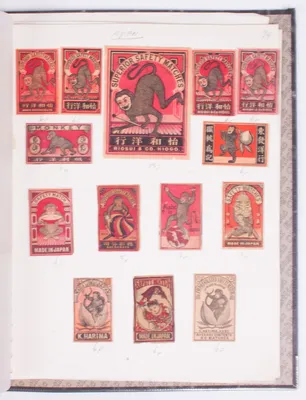 Album with ca. 700 Japanese matchbox brands, largely woodblock prints. Ca. 1900-1950.
