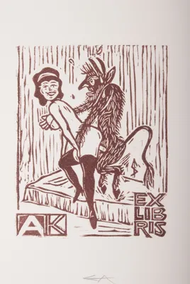 Jørgen Tews Ex Libris Sammlung. Box with 82 different erotic ex libris'. Pasted on paper which lists the maker and owner of the ex libris.