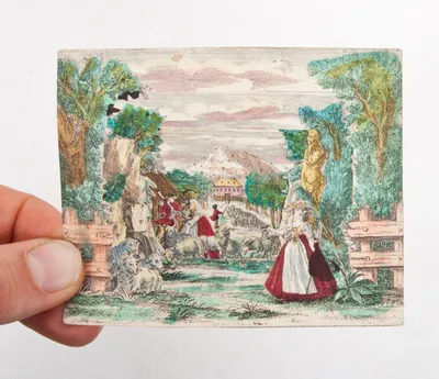 Complete series of 5-stage tableau of the Shepherd's life, meant for diorama. Germany, first half 19th century. 9.1x7.3cm.
