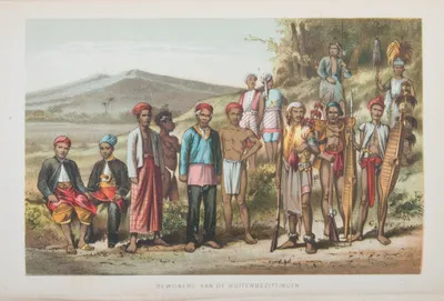Kleynenberg & Co, Haarlem. Each 73.5 x 59.5 cm. Timorese people, no. 19, good copy + The Papandajan Crater, no, 9, some small stains, else good - and 11 others. One pair of plates...