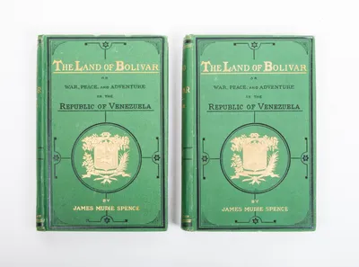 or War, Peace, and Adventure in the Republic of Venezuela, James Mudie Spence, in two volumes, sec. ed. London, Sampson, Low, Marston, Searle & Rivington, 1878. Uniform binding,...