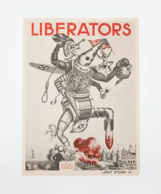 Leest Storm SS, '44. De USA zullen de Europeesche Kultuur van den ondergang redden. Cartoon poster. 72 x 53 cm.
