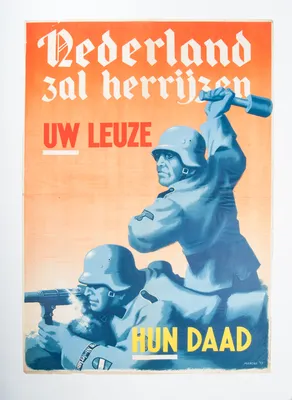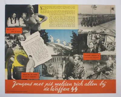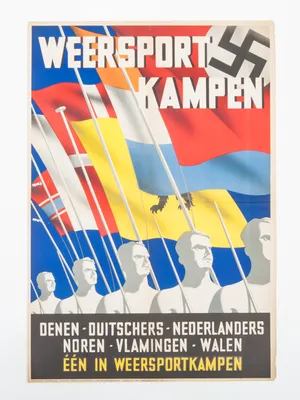 Denen, Duitschers, Nederlanders, Noren, Vlamingen, Walen. Eén in Weersportkampen. 1943. Öffentliche Aushengung genähmigt durch die Dienststelle des Reichskommissars. Plakat no. 114.