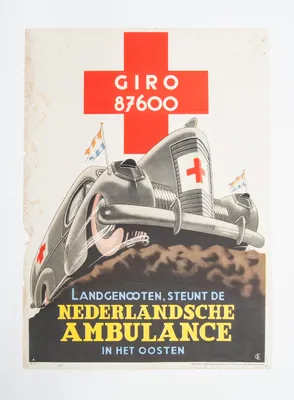 Stort uw bijdrage op Giro 106156. Goedgekeurd door het Departement v. Volksvoorlichting en Kunsten. Jan/Feb. 1944. 80 x 55 cm.