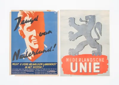Bij het Centraal Bureau voor vrijwillige dienstneming in landdienst in het Oosten, Den Haag. ECVO. 58.5 x 44 cm. K2048. Tears and chip in margin, twice tape residue on top and...