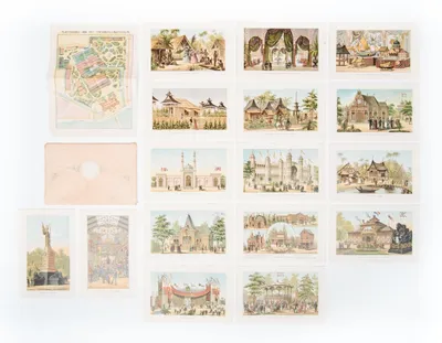 16 colourlithographic plates and 1 double-page colourlithographic "Plattegrond van het tentoonstellingsterrein".