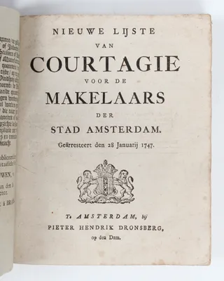 Convolute: Reglement voor het Makelaars-gild. Amsterdam, stads-drukkerije, 1797 + Nieuwe Lijste van Courtagie voor de makelaars der Stad Amsterdam, geärresteert den 28 januarij...