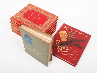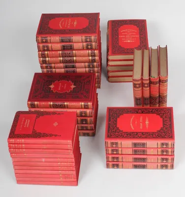 Lot with 22 red full cloth bindings with gilt title, floral border designs and spine decoration. Besides these works by Bosboom-Tousaint (published by Charles Ewings, The Hague,...