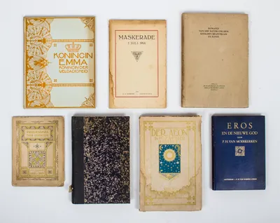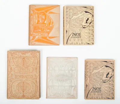Psyche, L. Couperus. 4th ed., L.J. Veen, Amsterdam, 1916. Binding design Jan Toorop + Psyche, L. Couperus. 7th ed., 1927. Sewn + Een Droom, Henri Borel. Amsterdam, P.N. van Kampen,...
