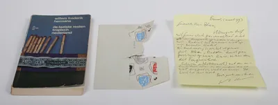 Literary print, 1944. Appeared in edition of 100 with poem by Max Lowland (pseudonym Max Schuchart) and drawing by Jos Ruting. These are copies nos. 17 to 20 + the design of the...