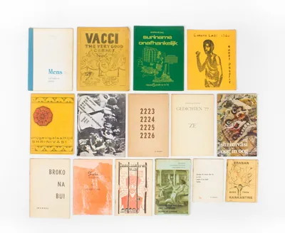 Apollo's Reclame & Uitgevers buro, Paramaribo, Suriname, ca. 1974. 30 pp. Stapled + Glenn Sluisdom, 2223 2224 2225 2226, C. Kersten & Co, 1975. 39 pp. Stapled + Broko na bui. Marac...