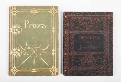 Met Voorrede van Mr. C. Vosmaer en Inleiding van Willem Kloos, 2de Druk. Vercierd door T. Nieuwenhuis. Amsterdam, S.L. van Looy, 1897, (2),194 p., original batiked cloth + Proza...