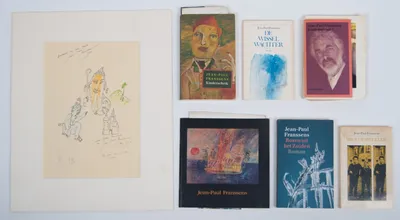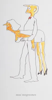 Original drawing in India ink with crayon. 'Voor Peter Barnaat' by Jean - Paul Franssen dec. 1997. 34 x 24 cm. Mounted + Broederweelde, de Harmonie, Amsterdam, 1995. With dedication...