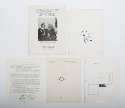 Unlucky Number. 13 Minipoempamphs. Jiri Valoch, GrOnk, s5#7, 1969 + Rain. Judith Copithorne, Gandhi Press, 1969. 11 pp. Stapled + Transitions to the Beast. Steve Mc Caffery, Ganglia...
