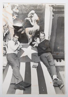 Photo of a young Vinkenoog and Mulisch with two cats in Paris, ca. 1955. Top right a few coffee stains. From Henk Meier collection.