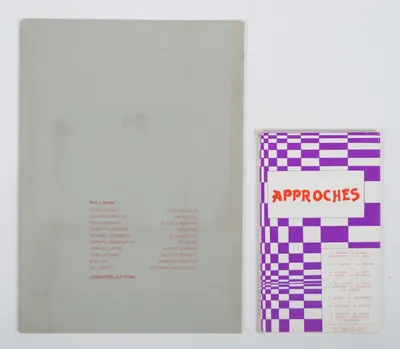 Approches. Revue de recherches. F. Popper - J. Blaine et al. 122 pp. Several pages loose + Wall Show. Lisson Publication, copyright 1971.