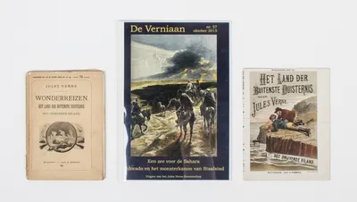 gevolgd door Een treurspel in de wolken. Aflevering 103-105 of Nieuwe Serie afl. 53-55. Rotterdam, J.G. Robbers, 1880, paging: 97-234,(6) p., with tinted lithographic map and woodcut...