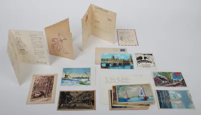 Lot with 13 New Year's greetings cards by artist Lotte Ruting, 5 of which together with Jan Elburg (with whom she was in a relationship until 1960) - and 2 birthcards for her children...