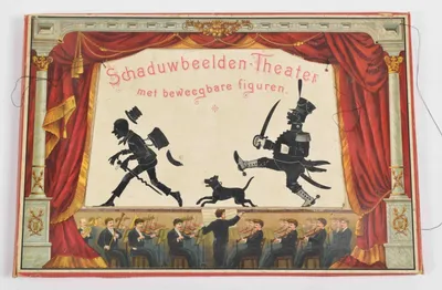 (Chineesche Schimmen) met beweegbare figuren. Eene vroolijke uitspanning voor Jon en Oud. The Netherlands, c. 1890. Complete theatre in lithographed box with booklet and figures....