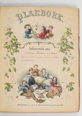 Folio, contemp. boards. Mounted profusely decorated title and 89 pages with over 700 scraps, including lithographs of Amsterdam, Rotterdam, Arnhem, The Hague, an early engraving...