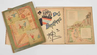 Histoires & Scenes Humoristiques. Contes moraux et merveilleux. Paris, A. Capendu, c. 1880. 100 coloured catchpenny prints by Pellegrin. Ills. boards with dust jacket, folio. 7...