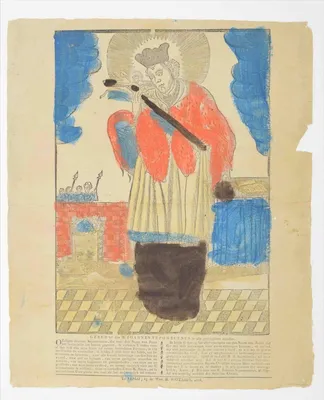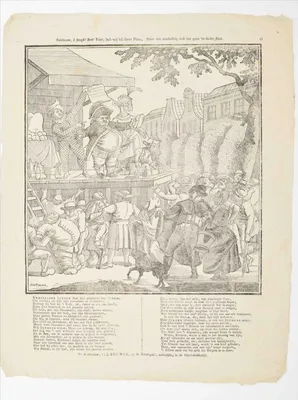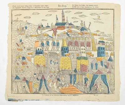 Contemp. thumb-coloured catchpenny print with one single large woodcut, sheet size 37.5 x 31 cm, Venlo, Wed. H. Bontamps, 1818, with laudatory verse in two columns below, unnumbered.