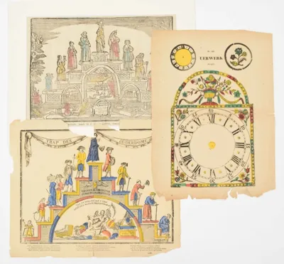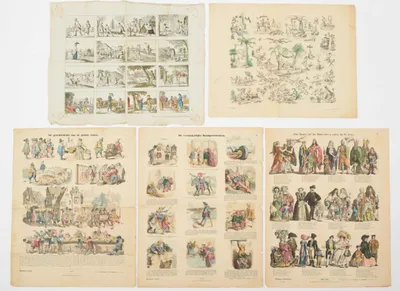 Lot of 16 catchpenny prints, 1800-1920, partly in colour. Several mounted on heavy paper. Published by Gordinne, Liège; J. de Lange, Deventer; P.C.L van Staden, Amsterdam, etc. Various sizes.