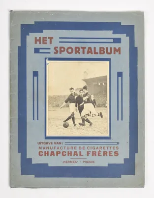 Large oblong album, half cloth, complete with 100 large plates and 100 result picture cards. Neat copy + Philips, Maastricht - De Regels van het Voetbalspel voor Spelers & Kijkers....