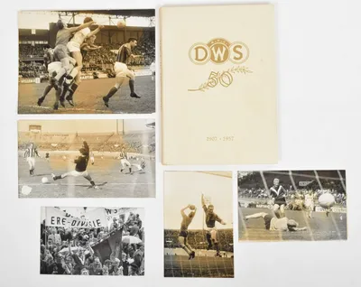157 pp. Lovely copy. With 5 press photos by Flip Martens and others of matches from 1963. Incl. Huub Lenz scoring in the victory on R.B.C., and the 2-1 victory on Go Ahead that...