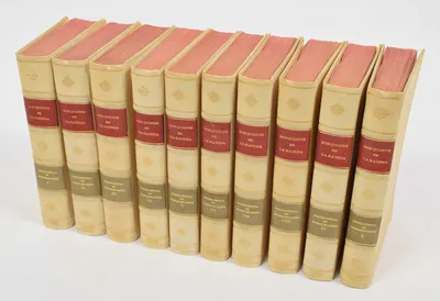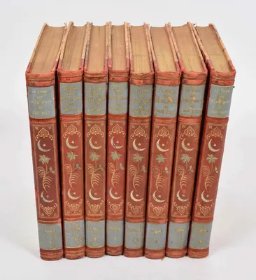 Eug. Faxquelle, ed. trsl. Dr. J.C. Mardurs. With chromotypes by Mulot, Krieger, et cie, text frames Motteroz & Marttinet; colour plates by D. De Malherbe. 8 vols., c. 1910. In...