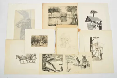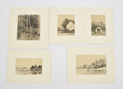 Five drawings, with subject Batavia and surroundings, c. 1900. All but one signed b.r. Dimensions varying from 18.2 x 12.2 to 22.3 x 19 cm.