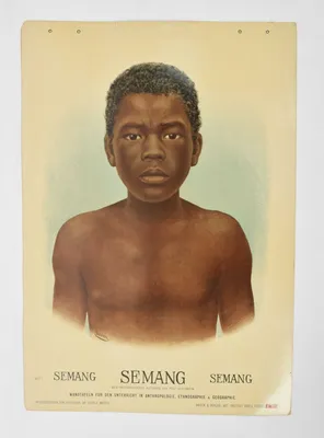 Wandtafeln für den Unterricht in Anthropologie, Ethnographie & Geographie. No. 10: Senoi + No. 11: Semang. Lithography by Steiner after photography by Rudolf Martin. Zürich, Orell...